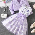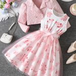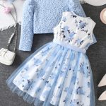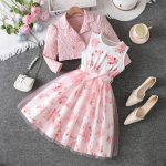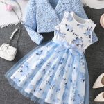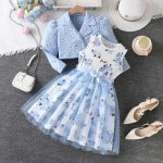Blue rose vest dress, small fragrant lapel jacket kidsren’s two-piece set