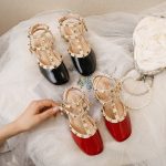 Rivet Baotou, Cool girls’ shoes for school performance. Girls’ shoelace, heel bright diamond children’s’ shoes